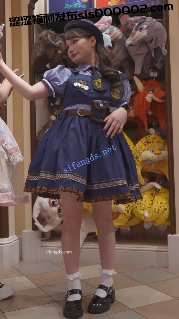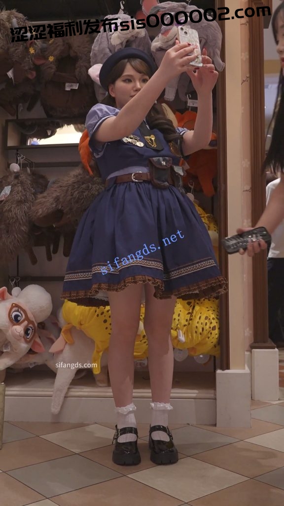 •  兔耳警官服小姐姐逛街,蹲下自拍直接露内裤。